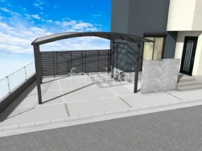 駐車スペースの雑草や砂利を撤去し、土間コンクリート仕上げに変更することで、掃除やメンテナンスがしやすいスッキリとしたスペースに仕上げました。 また、既存の植栽を撤去した箇所に大判タイル LIXIL アヴァンティのタイル門塀を新たに設置し、目隠し効果をもたらしつつモダンな雰囲気を加えました。