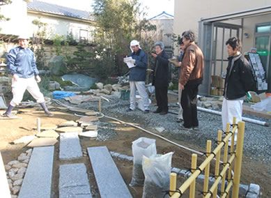 先週の土曜日は、お庭の先生が、工事の進行状況を視察に来られました。