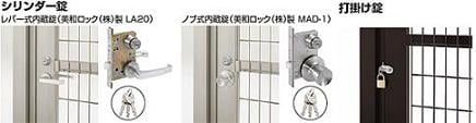 レバー式内蔵錠とノブ式内蔵錠の2種類のシリンダー錠と打掛け錠を用意しています。
