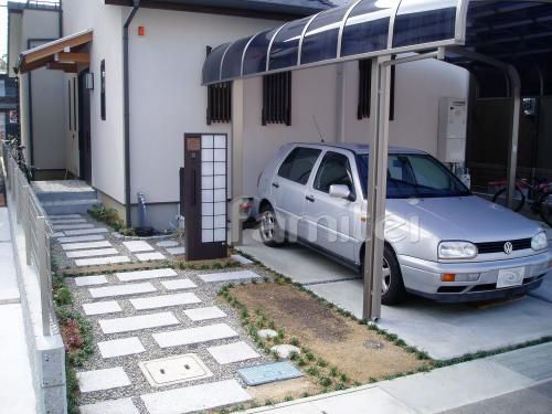アプローチに板石を並べてみると、落ち着いた和テイストのアプローチに