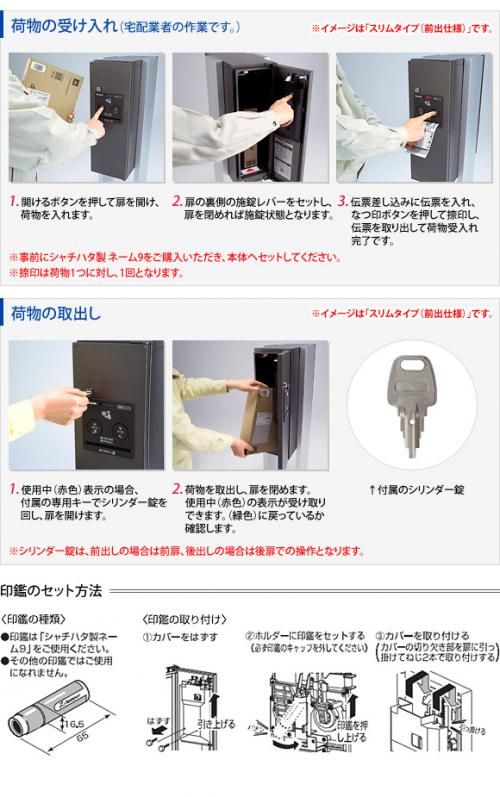 CDや書籍などの小さな荷物の受け取りに適したスリムタイプです