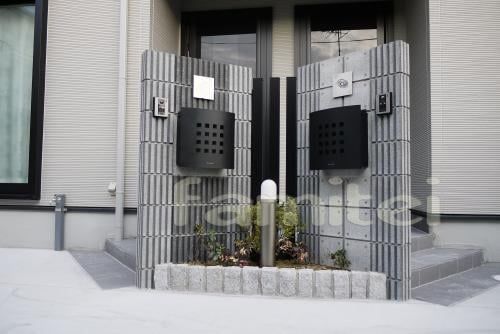 2世帯用の門柱もソリッドストーンで
