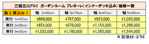 詳細はこちらへ→三協プレオーレ+インナー人工木デッキ(積雪20cm対応)
