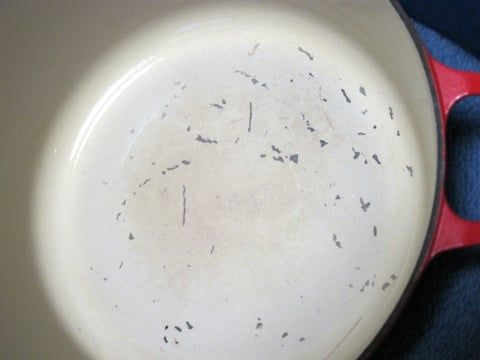 ホーローのお鍋って、場合によっては焦げて、その部分が変色することもあり