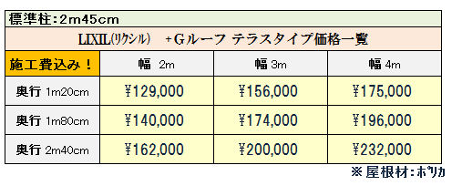 LIXIL プラスGテラス屋根 取付込で129,000円〜激安販売(関西限定)