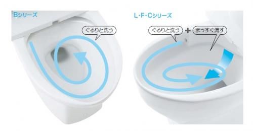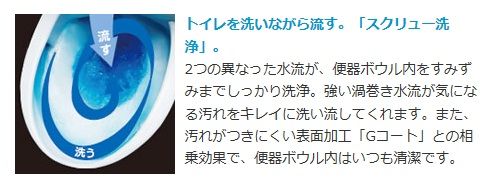 渦巻き状の洗浄水で、側面からぐるりと洗浄!便器ボウル内をすみずみまで洗浄します。