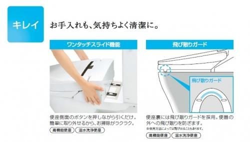 タカラのトイレならワンタッチスライドでお掃除も楽々なんですよ〜