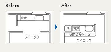 リフォーム前は、窓に向いているにも関わらず、暗い空間だったキッチンが大変身