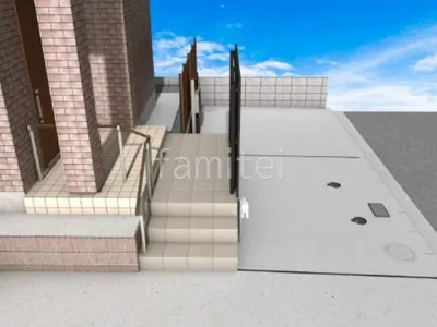 既存の門塀と階段を解体・撤去し、土間コンクリート仕上げで駐車スペースを拡張することで、利便性が向上しました。 新たに設けた階段に温もりある木調の目隠しフェンス F&F マイティウッドデコllと、スタイリッシュなデザインの目隠しスクリーン F&F ラインスタイルSタイプを採用し、プライバシーとデザイン性を両立しました。 また、機能門柱 YKKAP 木製調ルシアスポストユニットWD01型を設置し、ナチュラルで洗練された印象のエントランスに仕上げました。