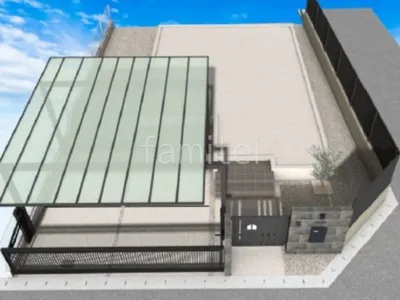 駐車スペースに2台用カーポート YKKAP エフルージュFIRSTと跳ね上げゲート LIXIL ワイドオーバードアS2型を組み合わせ、車をしっかりと守る安全な駐車空間に仕上げました。 門まわりには大判タイル タカショー セラレバンテを使用したタイル門柱と、親子開き門扉 LIXIL AB TS2型を採用し、機能性とデザイン性を両立しました。 敷地境界には化粧ブロック ユニソン ジャスティと目隠しフェンス LIXIL AB YS3型を設けることで、プライバシーを確保し、周囲からの目線を遮ります。